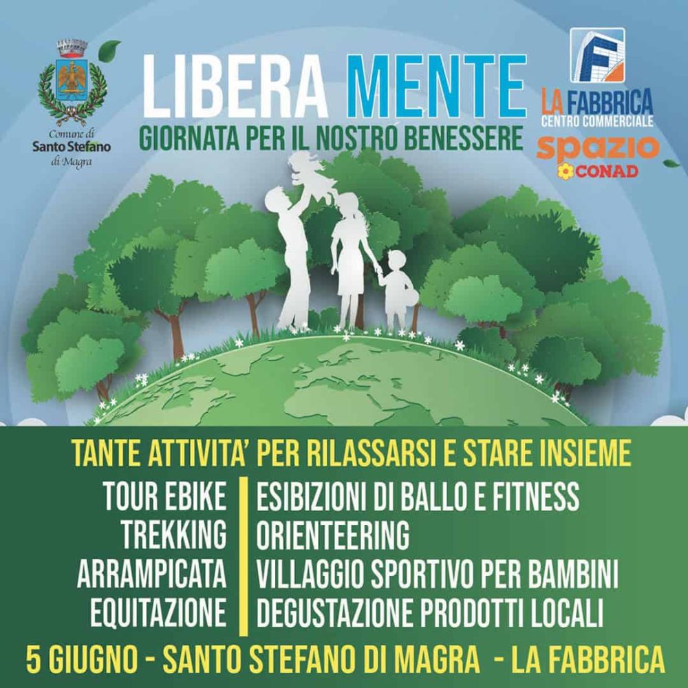 Domenica 5 Giugno a partire dalle ore 09:00 vi aspettiamo a La Fabbrica con 🌳 Libera Mente 👨👩👧👦 l’evento dedicato all’outdoor e al nostro territorio, organizzato in collaborazione con Pressbike e con il Comune di Santo Stefano di Magra.